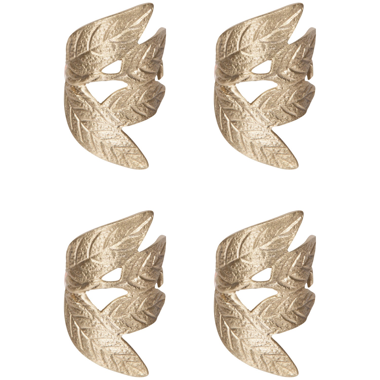 Engraved and organically shaped, this set of golden-hued Frond napkin rings will gild your tablescape for special occasions—or elevate your everyday.