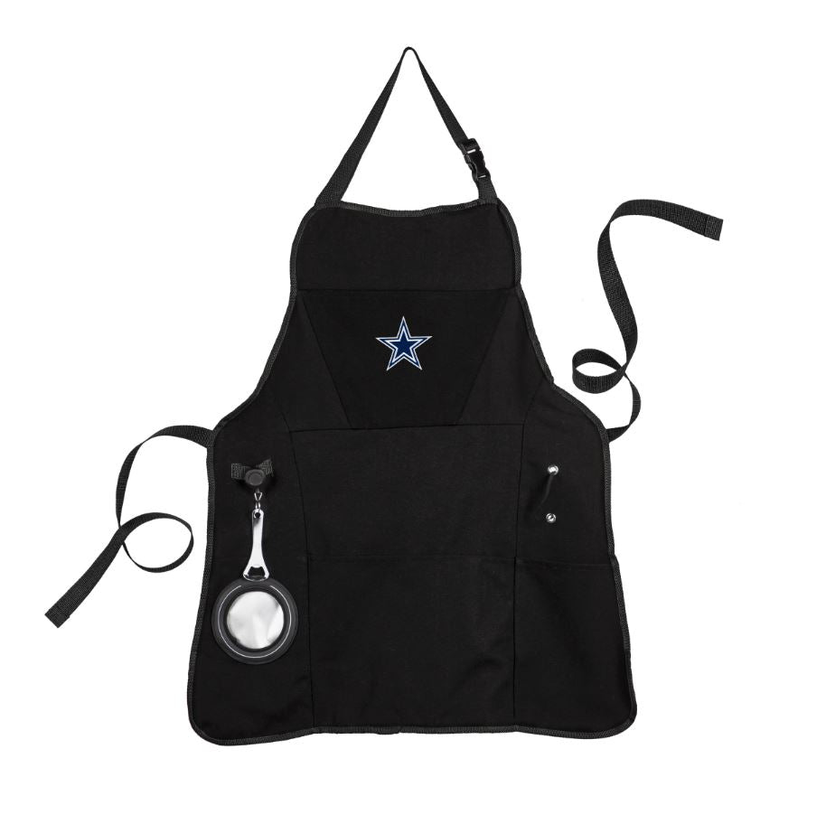 Cook up some team spirit with this Dallas Cowboys Grilling Utility Apron in Black! Get ready to tackle any backyard BBQ with all of the fun features this apron has to offer. The easy adjustable neck strap and waist ties ensures a fit for most. Made from heavy-duty cotton canvas, the apron features the officially licensed logo embroidered on the chest, five pockets for any grilling essentials, a rope cord for hanging a towel, and a retractable bottle opener. It even includes an insulated bottle or can holder!