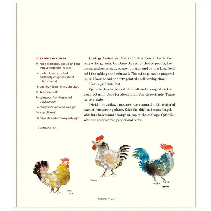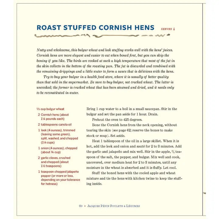 My Favorite Chicken & Vegetable Recipes Hardcover | 128 pages Cooking / Methods A collection of chicken and vegetable recipes from the world-renowned chef Jacques Pépin The legendary cooking teacher whom GQ calls “the most impactful living chef in America” shares his favorite chicken and vegetable recipes from a half-century career spanning two continents. Some, like Poulet à la Crème and Baker’s Wife Potatoes, recall the country French dishes of his childhood, while Chicken with Cognac Sauce and Velvet Spinach come from his days in fine French restaurants. Most, though, are born in his contemporary Connecticut kitchen. All have that trademark Pépin touch: made with just a few steps but sublime enough for company, from Roast Split Chicken with Mustard Crust to Caramelized Tomatoes Provençal. Charmingly illustrated with Pépin’s paintings, this little compendium is perfect for revitalizing every cook’s repertoire