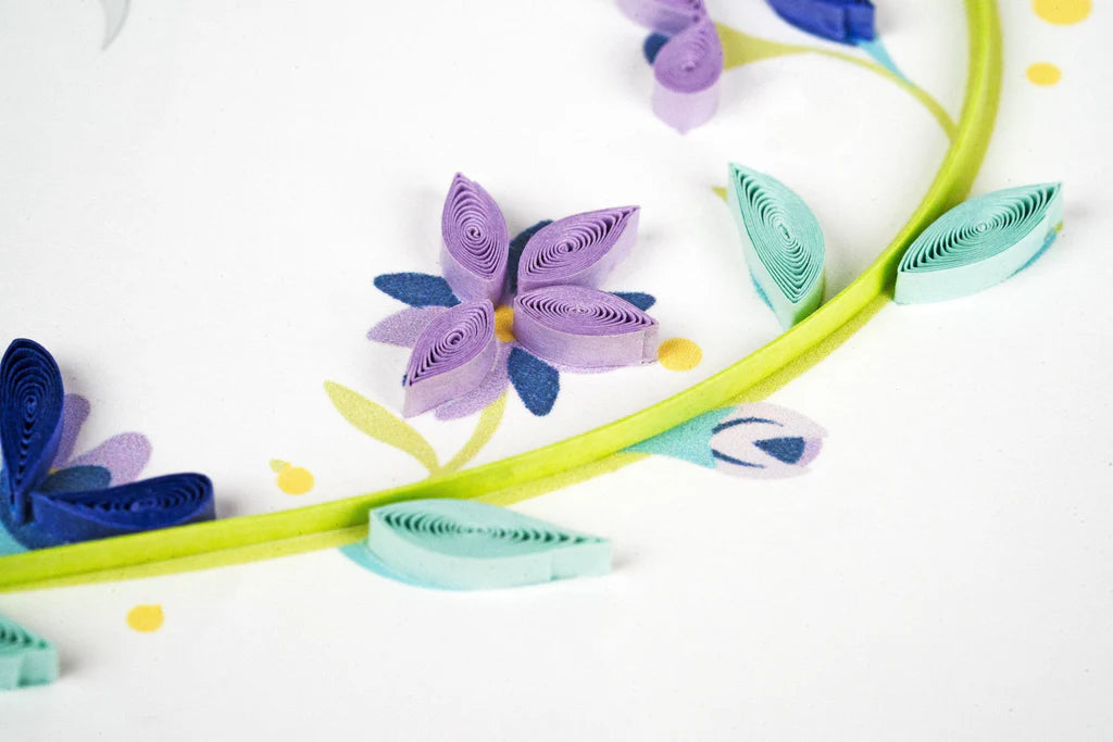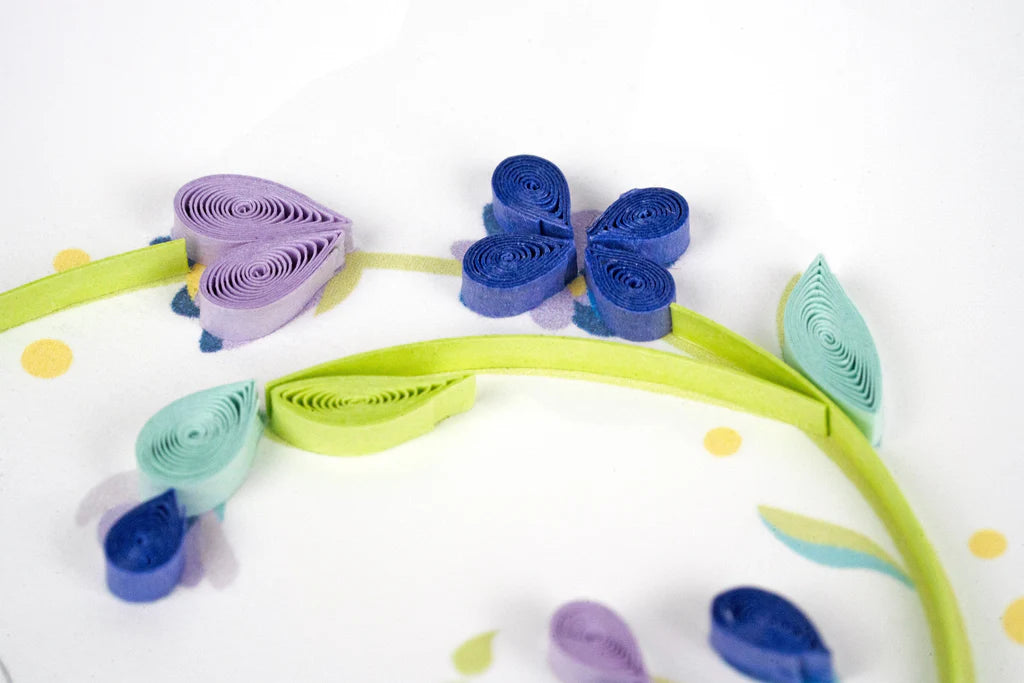 Each quilled card is beautifully handmade by a highly skilled artisan and takes one hour to create. A quilled card is meant for you to share, treasure as a keepsake, or display as the work of art it is. Don't just send a card, send art!