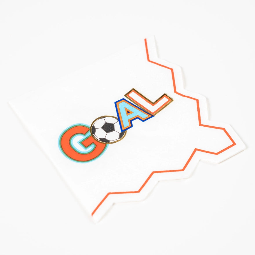 Soccer GOAL Beverage Napkins – Celebrate every big moment—on or off the field—with our Soccer “GOAL” Beverage Napkins! Featuring bold, colorful lettering and a soccer ball “O”, these napkins are made to kick your party up a notch. The jagged zigzag border adds a sporty edge, making them the perfect sidekick for drinks, snacks, and sweet victories at your soccer-themed birthday, team party, or watch event.