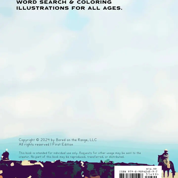 Forty pages of western word search and coloring illustrations for all ages! The word searches and coloring illustrations are based on the cowboy and western way of life. The pages include subjects such as farriers, horses, cattle, spur makers, rodeos, and the saddle house.